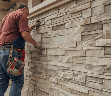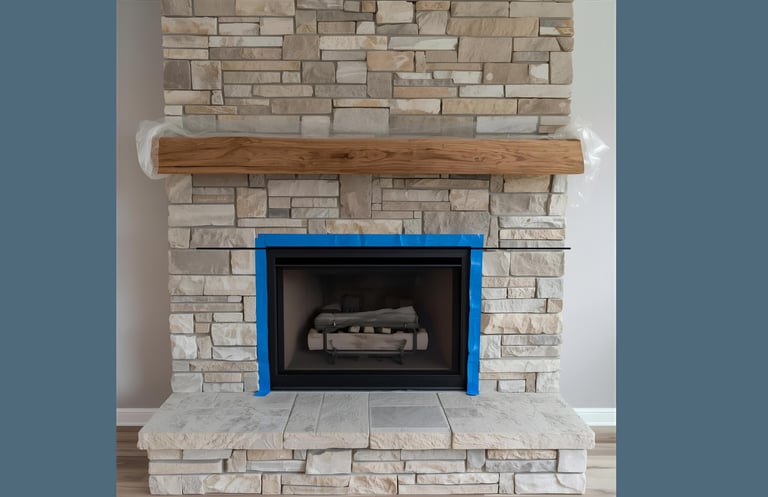 Tailored ledge-stone and dimensional stone patterns enhancing your living area aesthetics.